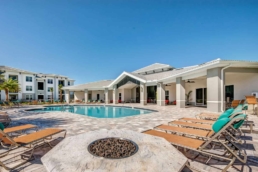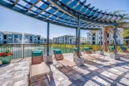 The garden-style apartment buildings surround a beautiful man-made lake, which is the anchor of the development. The 6,800 square foot resort-style clubhouse offers a variety of convenient amenities: a community room with a large kitchen, workrooms, fitness center, yoga/pilates room and an outdoor lounge with a bar and grill adjacent to the luxurious outdoor pool area.