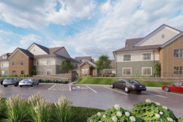 The final master plan included the conversion of the historic Rickley and York-rite buildings from skilled care to up to 100 units of Independent Living. The skilled care would be down-sized and relocated to a new 2-story building designed in the household style. This new building would replace a problematic structure, which once demolished would also allow for construction of a new 3-story Assisted Living and Memory Care. Lastly, 3 “Brownstone” apartment buildings would introduce an additional housing option with walk-out units located on the first floor.