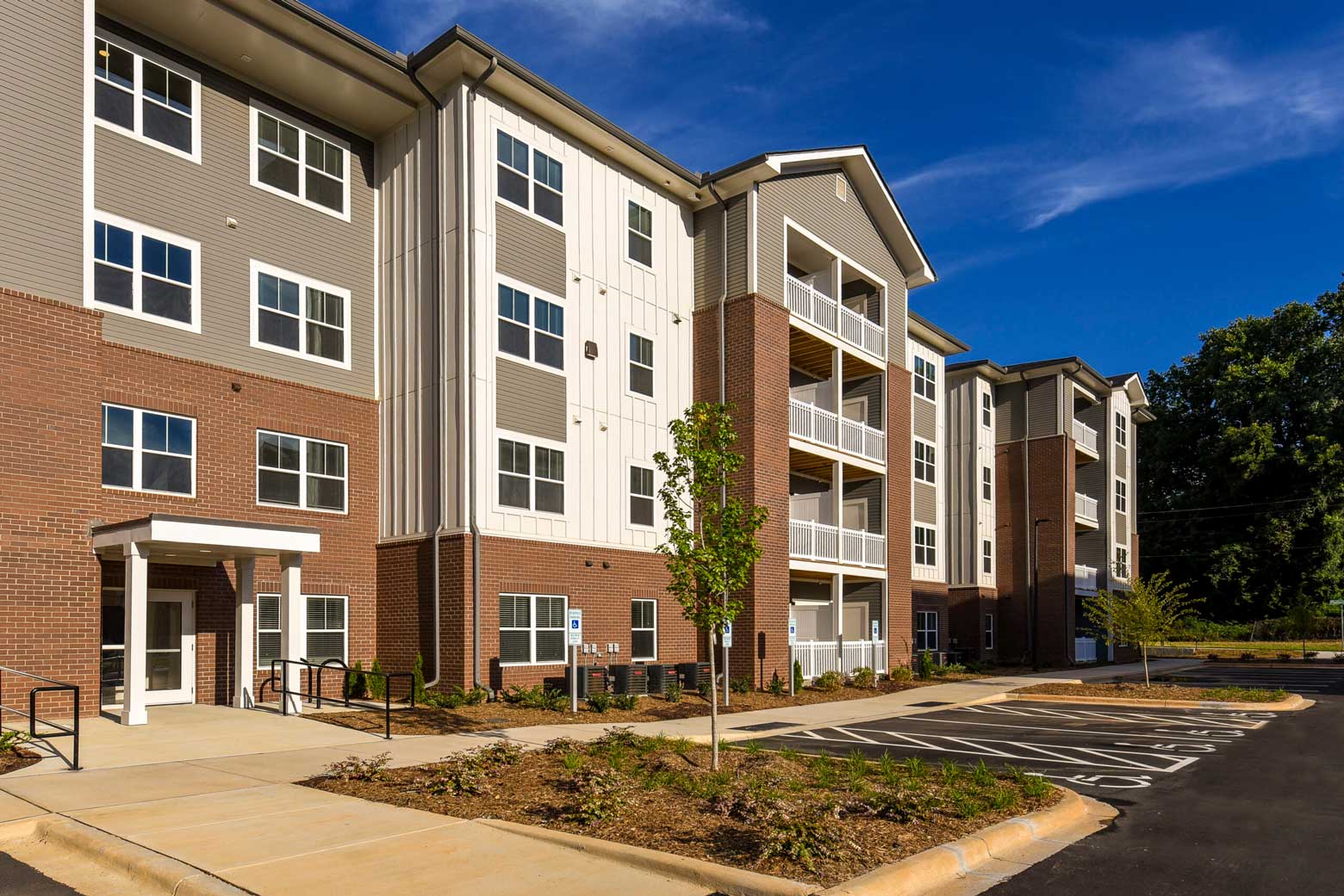 Sundale Flats is conveniently situated along Charlotte’s light rail line, giving residents easy access to downtown while residing in a suburban environment. Connecting to surrounding green space and the Charlotte’s pedestrian paths were also priorities in deciding a location that promoted a healthy lifestyle for residents.