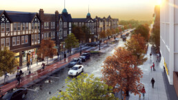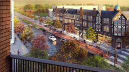 In addition to enhancing the residential experience at the Taylor Tudor Apartments, the renovation served as an opportunity to revitalize the broader street life environment along Taylor Road. Through the design of new and innovative live-work apartment units on the ground floor, we created flexible commercial space that meets future demand for small business retailers and community amenities.