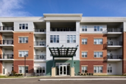 The new four-story addition to Vitalia Solon seamlessly connects to an existing building on the first floor. The apartments, which bring together sophisticated, contemporary design and senior-friendly functionality, offer spacious one-, two-, and three-bedroom units.